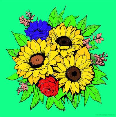 Ausmalbild Sonnenblumen Strauß