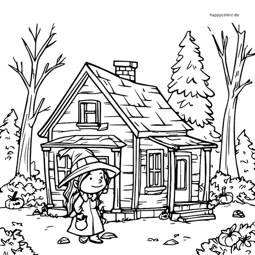 Male diese süße kleine Hexe vor ihrem gemütlichen Hexenhäuschen aus und hauche der Szene mit deinen Farben Leben ein.Reiche dein Kunstwerk online ein – eine Jury wählt das schönste Bild aus.